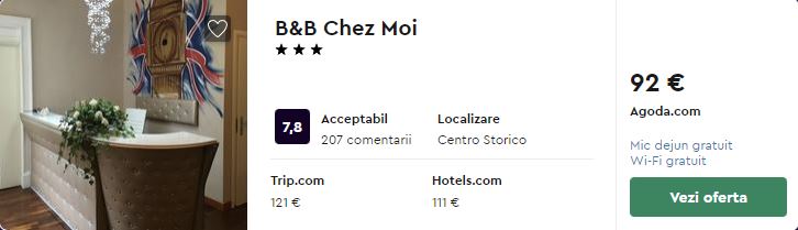 - Cazare (opt. 1): B&B Chez Moi – 92 euro / 3 nopti / camera dubla / mic dejun