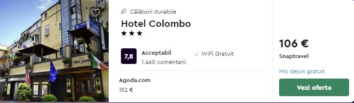 - Cazare (opt. 2): Hotel Colombo – 106 euro / 3 nopti / camera dubla