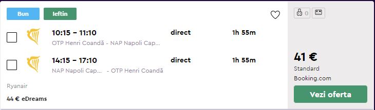 - Zbor: Bucuresti – Napoli, 41 euro, dus-intors, operat de Ryanair
