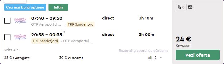 - Zbor: Bucuresti – Oslo, 24 euro, dus-intors, operat de Wizz Air