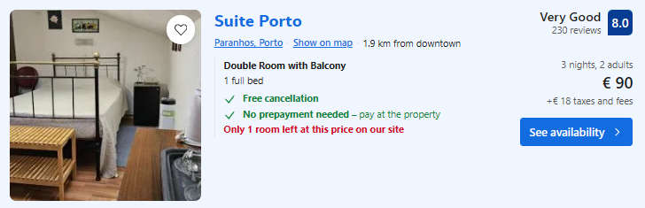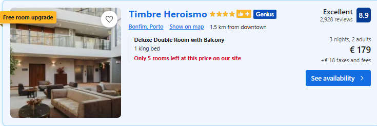 - Cazare (opt. 1): Suite Porto – 108€ / 3 nopti / camera dubla