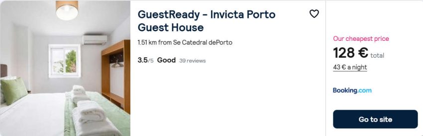 - Cazare (opt. 1): GuestReady – Invicta Porto Guest House – 128€ / 3 nopti / camera dubla