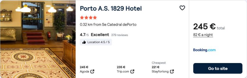 - Cazare (opt. 3): Porto A.S. 1829 Hotel 4* – 245€ / 3 nopti / camera dubla