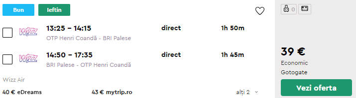 - Zbor Bucuresti – Bari, 39 euro, dus-intors, operat de Wizz Air