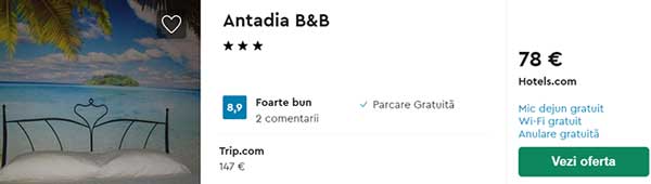 - Cazare (opt. 1): Antadia B&B – 78 euro / 3 nopti / camera dubla / mic dejun inclus