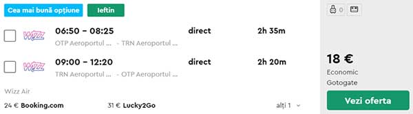 - Zbor Bucuresti – Torino, 18 euro,. dus-intors, operat de Wizz Air