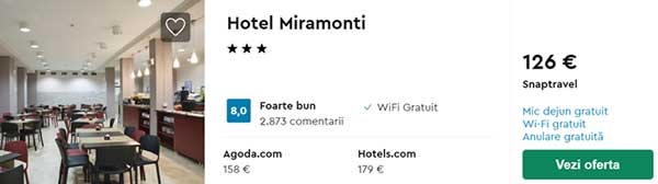 - Cazare (opt.1) Hotel Miramonti – 126 euro / 3 nopti / camera dubla / mic dejun inclus