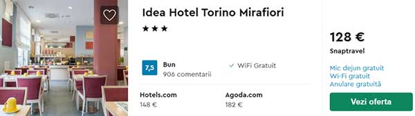- Cazare (opt. 2) Idea Hotel Torino Mirafiori –128 euro / 3 nopti / camera dubla / mic dejun inclus