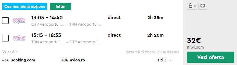- Zbor: Bucuresti – Torino, 32 euro, dus-intors, operat de Wizz Air
