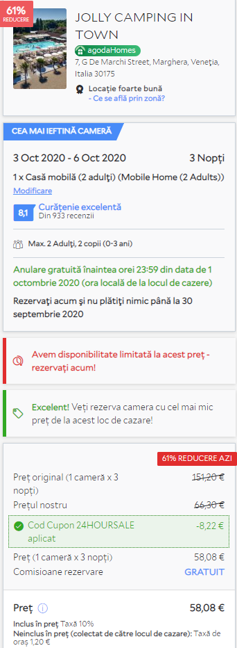 - Cazare 1: Jolly Camping In Town – 59 euro / 3 nopti / camera dubla