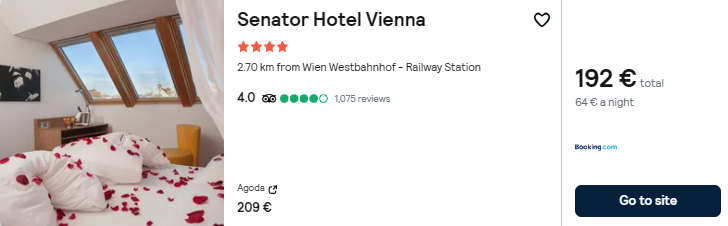 - Cazare (opt. 1): Senator Hotel Vienna – 192 euro / 3 nopti / camera dubla