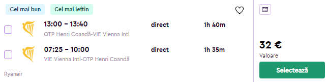 - Zbor Bucuresti – Viena, 32 euro, dus-intors, operat de Ryanair