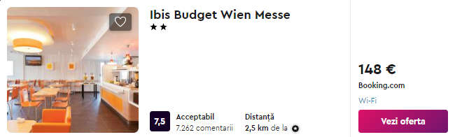 - Cazare (opt.1) Ibis Budget Wien Messe – 148 euro / 3 nopti / camera dubla