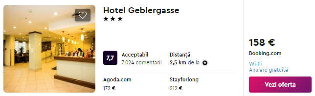 - Cazare (opt. 2) Hotel Geblergasse – 158 euro / 3 nopti / camera dubla