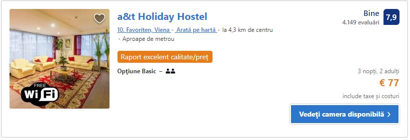 - Cazare 1: A&t Holiday Hostel Wien – 77 euro / 3 nopti / camera dubla
