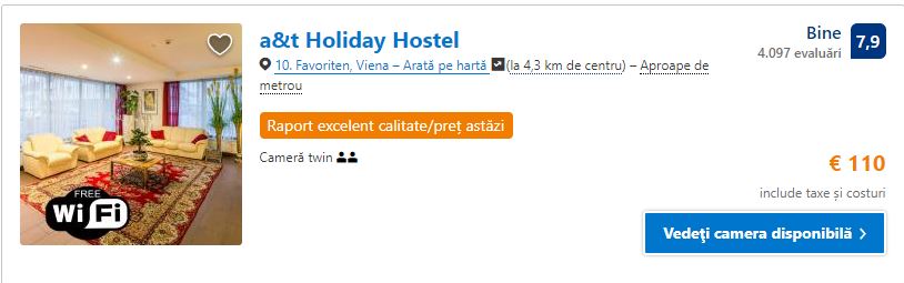 - Cazare 1: A&t Holiday Hostel Wien (baie privata) – 110 euro / 3 nopti / camera dubla