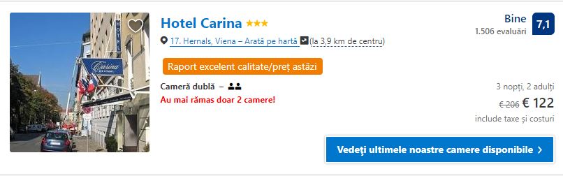 - Cazare 2: Hotel Carina – 122 euro / 3 nopti / camera dubla