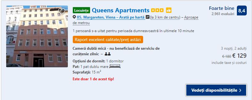 - Cazare 3: Queens Apartments – 129 euro / 3 nopti / camera dubla