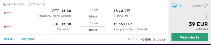 - Zbor: Bucuresti – Viena, 39 euro, dus-intors, operat de Laudamotion