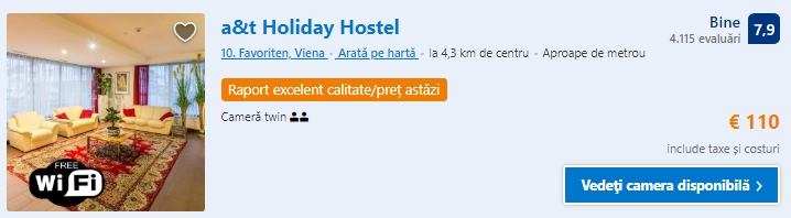 - Cazare 1: A&t Holiday Hostel Wien (baie privata) – 117 euro / 3 nopti / camera dubla