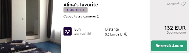 - Cazare 2: Alina’s favorite – 132 euro / 3 nopti / camera dubla