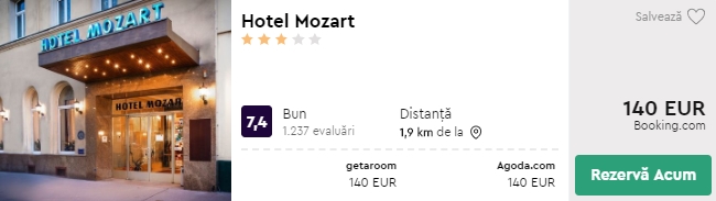 - Cazare 3: Hotel Mozart – 140 euro / 3 nopti / camera dubla
