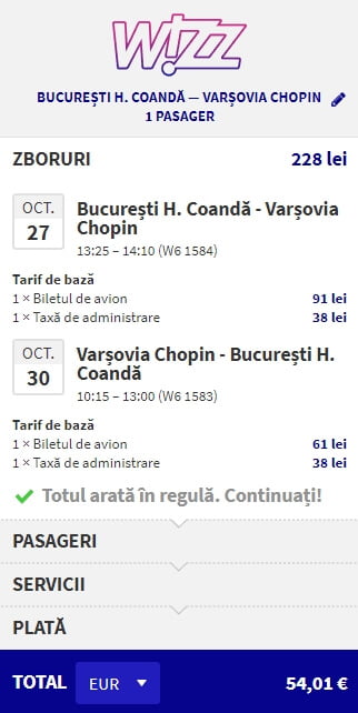 - Bucuresti – Varsovia, 54 euro, dus-intors, operat de Wizz Air