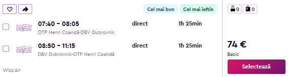 - Exemplu 2: Bucuresti – Dubrovnik, 74€, dus-intors, operat de Wizz Air