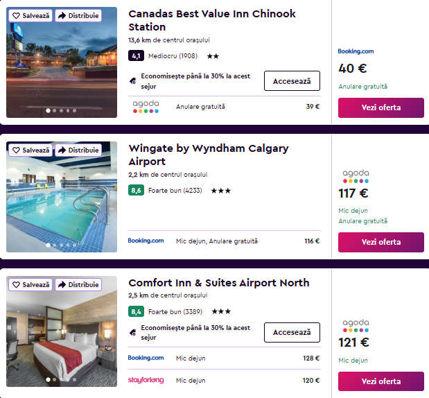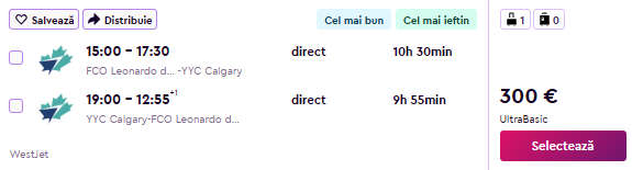 - Exemplu: Roma – Calgary, 30€, dus-intors, operat de WestJet