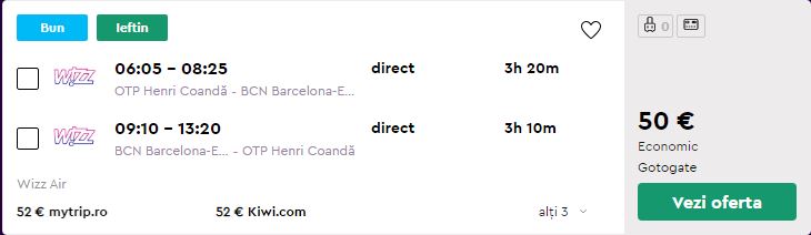 - Zbor: Bucuresti – Barcelona, 50 euro, dus-intors, operat de Wizz Air