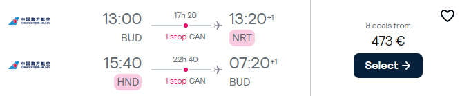 O serie de zboruri foarte ieftine catre Tokyo (Japonia) cu plecare din Budapesta. Zborurile sunt operate de China Southern, iar preturile incep de la 473 euro, dus-intors.