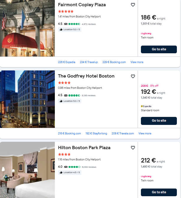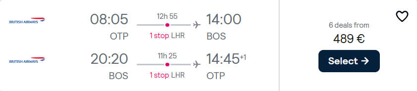 O serie de zboruri ieftine catre Boston (SUA) cu plecare din Bucuresti. Zborurile sunt operate de multiple companii aeriene(Brtish Airways, KLM / Air France, Delta), iar preturile incep de la 489 euro, dus-intors.