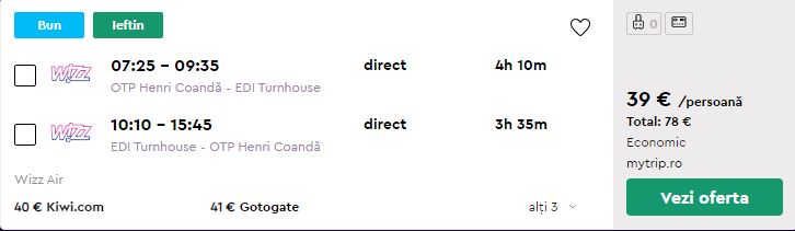 - Zbor (exemplu): Bucuresti – Edinburgh, 39 euro, dus-intors, operat de Wizz Air