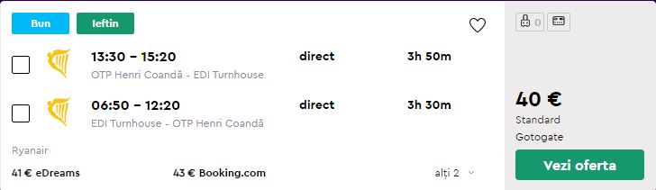 - Zbor (exemplu): Bucuresti – Edinburgh, 40 euro, dus-intors, operat de Ryanair