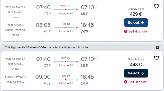 - Zbor: Bucuresti – Male, 429 euro, dus-intors, operat de Wizz