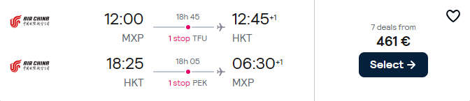 O serie de zboruri foarte ieftine catre Phuket cu plecare din Milano. Preturile incep de la 461€, dus-intors si sunt operate de Air China.
